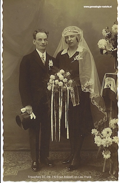 Elisabetha Wilhelmina FrankElisabetha Wilhelmina (Lies) Frank  * 26-08-1908 Silvolde † 11-10-1998 Arnhem ∞ Johannes Marinus (Jan) Roelofs, 05-09-1929 De Steeg Gem. Rheden, 8 kinderen |