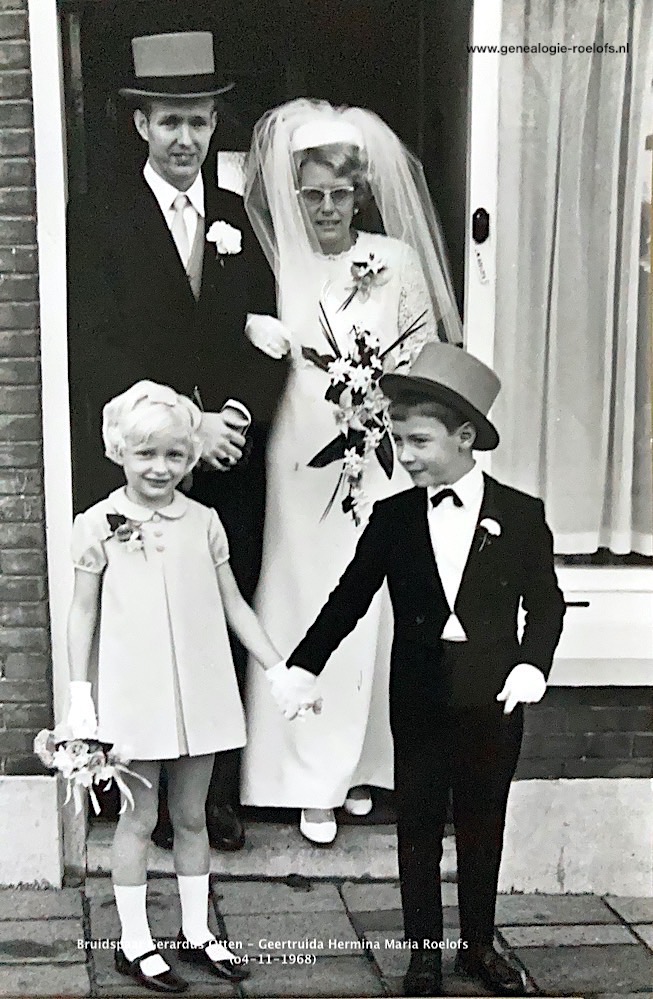 | Partner | Gerardus Johannes Alphonsus OttenGerardus Johannes Alphonsus (Gerard) Otten ![]() * 23-09-1938 Oosterbeek † 19-08-2021 Oosterbeek ∞ Geertruida Hermina Maria (Gerda) Roelofs, 04-11-1968 Velp Gem. Rheden, 2 kinderen |