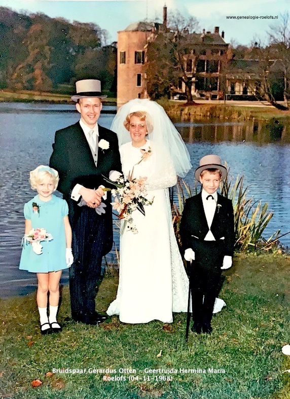 | Partner | Geertruida Hermina Maria RoelofsGeertruida Hermina Maria (Gerda) Roelofs ![]() * 18-12-1943 Velp Gem. Rheden † 28-09-2009 Arnhem ∞ Gerardus Johannes Alphonsus (Gerard) Otten, 04-11-1968 Velp Gem. Rheden, 2 kinderen |