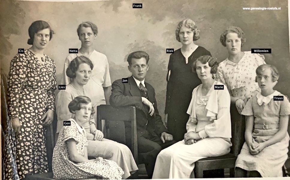 | Vader | Johannes Arnoldus Josephus FrankJohannes Arnoldus Josephus Frank ![]() * 08-07-1881 Groenlo † 08-09-1954 Doetinchem ∞ Hendrika Johanna Kok, 06-02-1907 Culemborg, 9 kinderen |