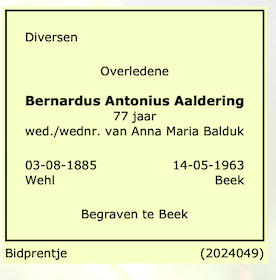 Bernard Antonius Aaldering overlijden