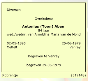 Antonius Aben overlijden
