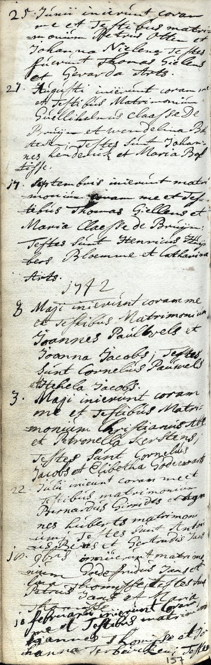 BHIC, DTB Haps RK trouwboek 1724-1792 inv. nr. 3 folio/pag. 169v