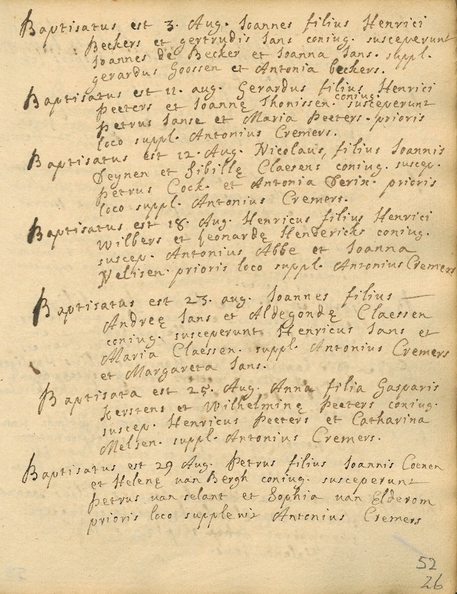 BHIC, DTB R.K. Gem. Sambeek dopen 1700-1772, inv. nr. 25 pag. 26r