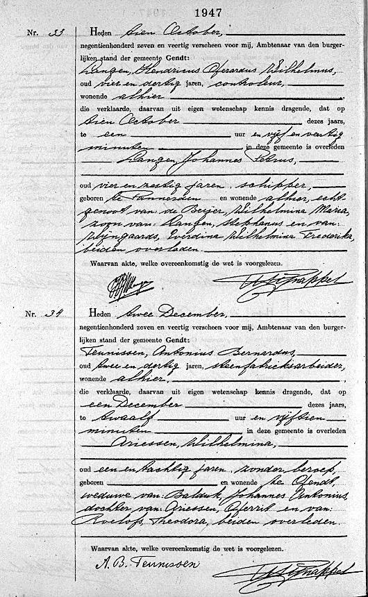 Gendt overl. 01-12-1947 Wilhelmina Ariessen