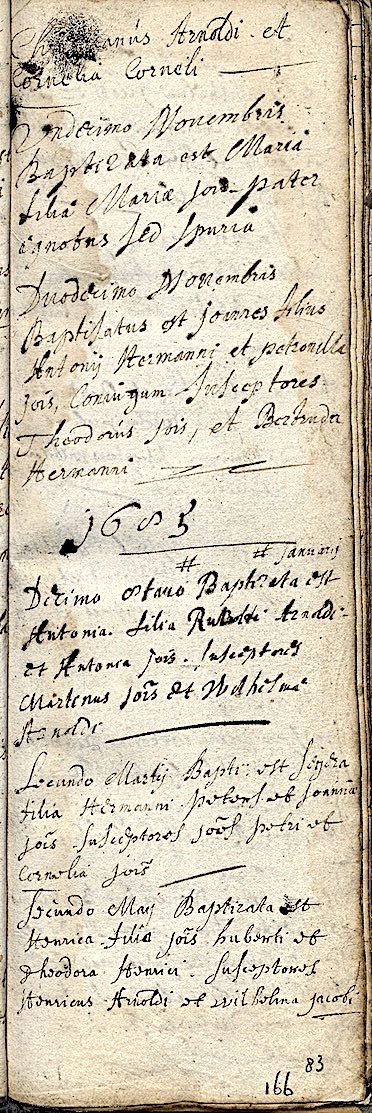 BHIC, DTB Beers RK doopb. 1610-1691, inv. nr. 19 folio/pag. 166