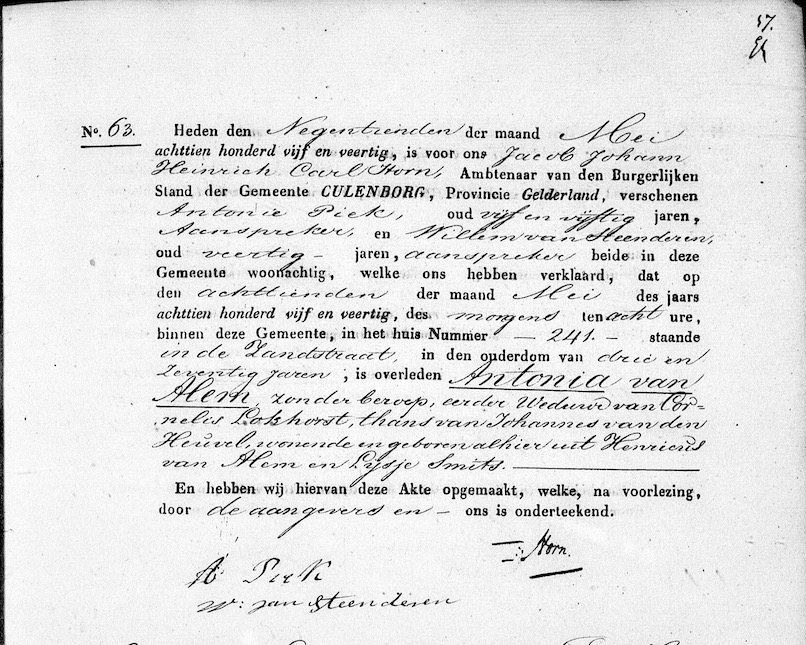GldA, ovl. reg. Culemborg 1845, akte 63