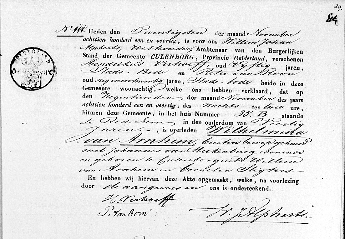 GldA, ovl. reg. Culemborg 1841, akte 111