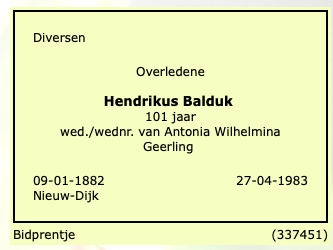 Hendrikus Balduk overlijden