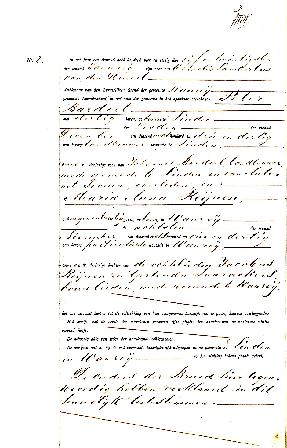 BHIC, huw. reg. Wanroij 1864, akte 2