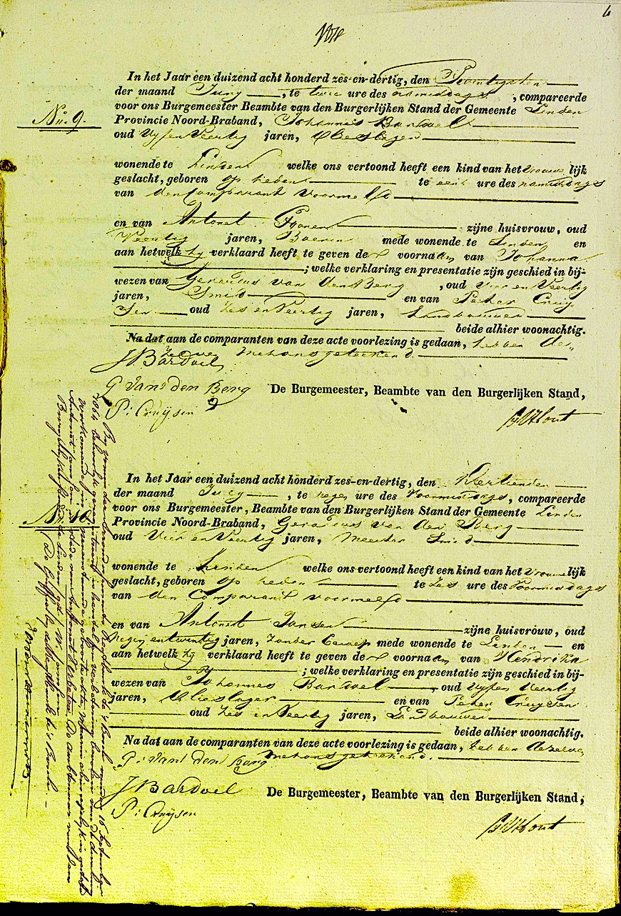 Fam. search, geb. reg. Linden 1836, akte 9