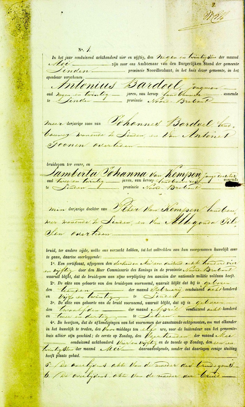 BHIC, huw. reg. Linden 1854, akte 1