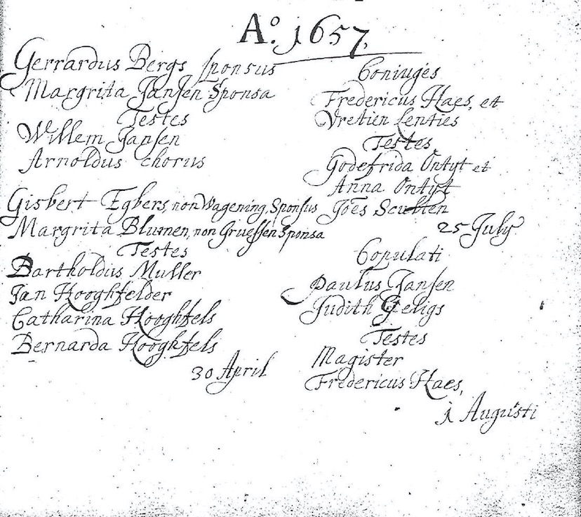 Groessen huw. 30-04-1657 Gerardus Bergs en Margrita Jansen