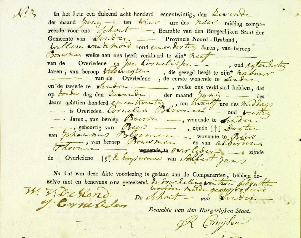 Cornelia Bloemen overlijden