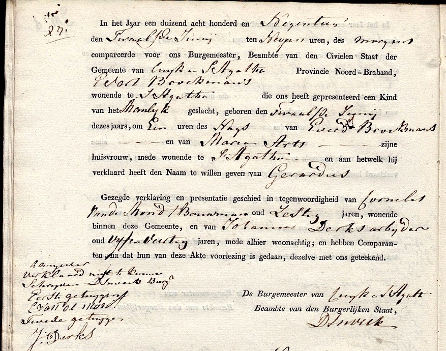 BHIC, geb. reg. Cuijk en Sint Agatha 1819, akte 27