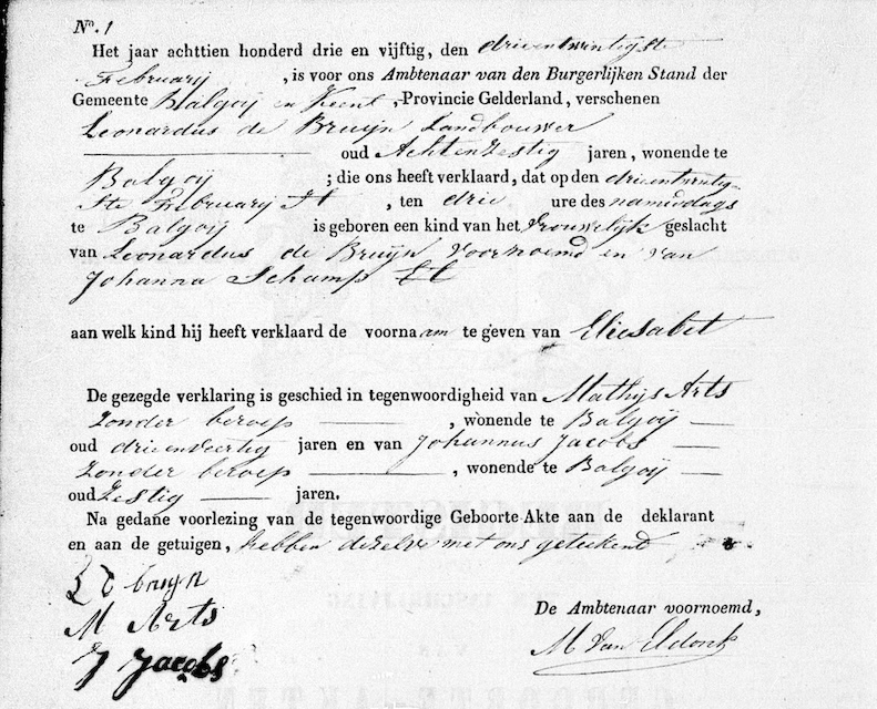 Fam. search, geb. reg. Balgoij 1853, akte 1