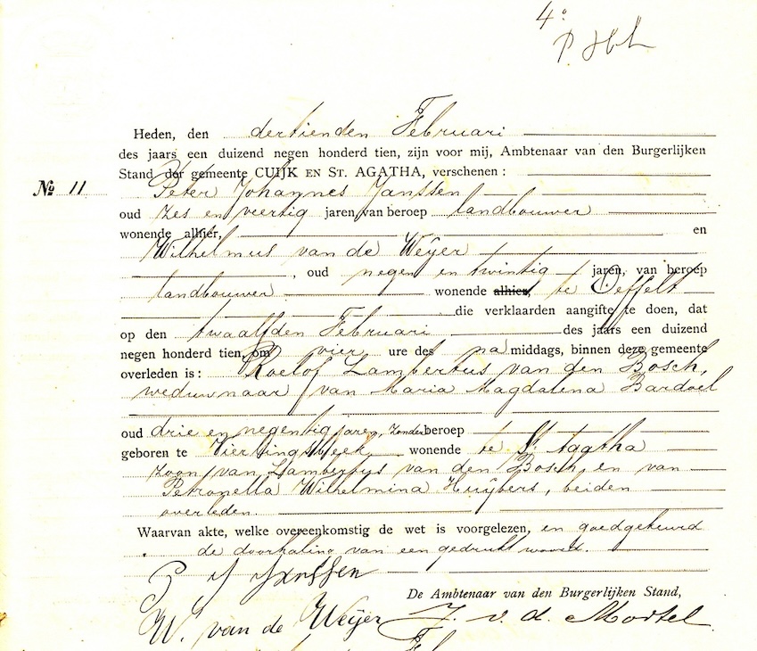 WWW, ovl. reg. Cuijk en Sint Agatha 1910, akte 11