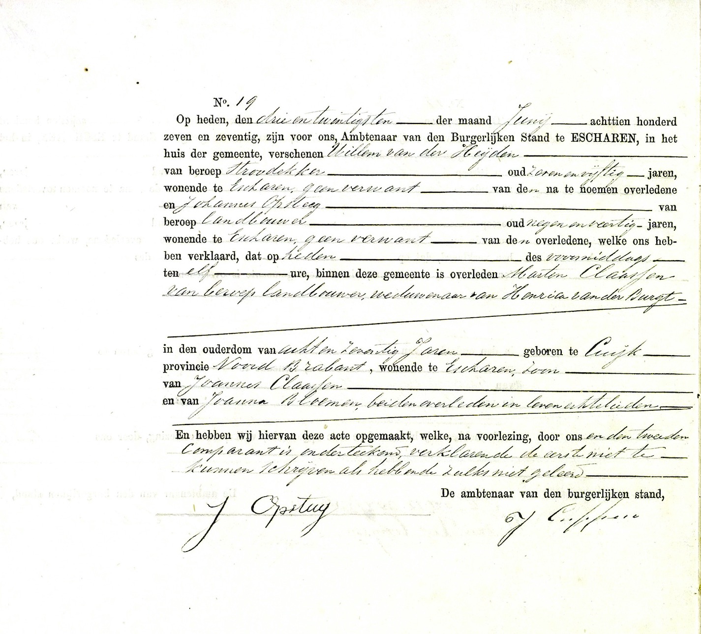 Martinus Claassen overlijden