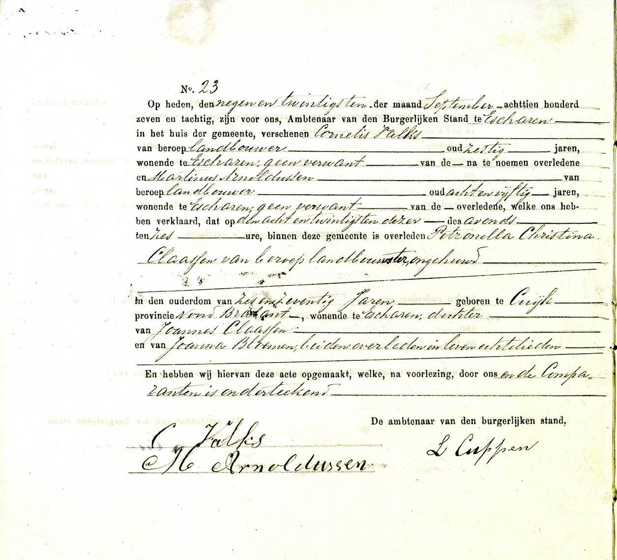 Petronella Christina Claassen overlijden