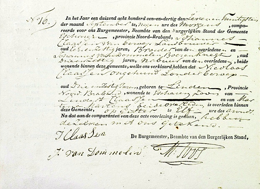 BHIC, overl. reg. Escharen 1831, akte 16