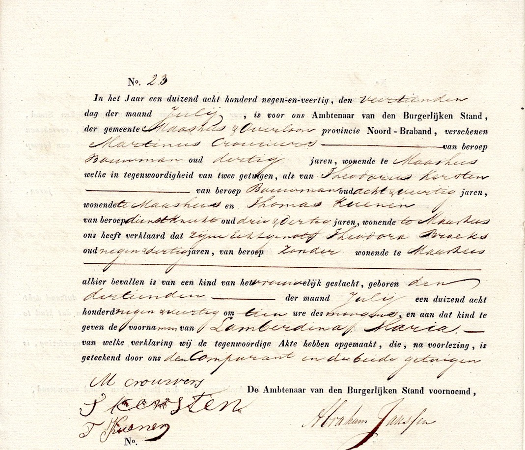 BHIC, geb. reg. Maashees en Overloon 1849, akte 23