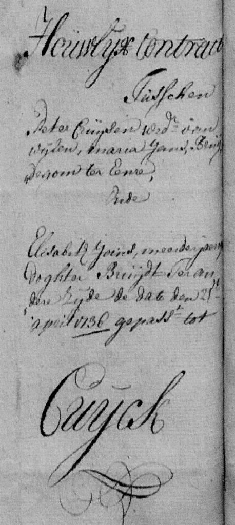 Cuijk huw. 21-04-1736 Peter Cruijsen en Elisabeth Jans