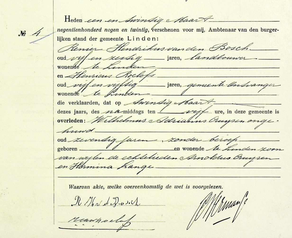 Wilhelmus Adrianus Cruijsen overlijden