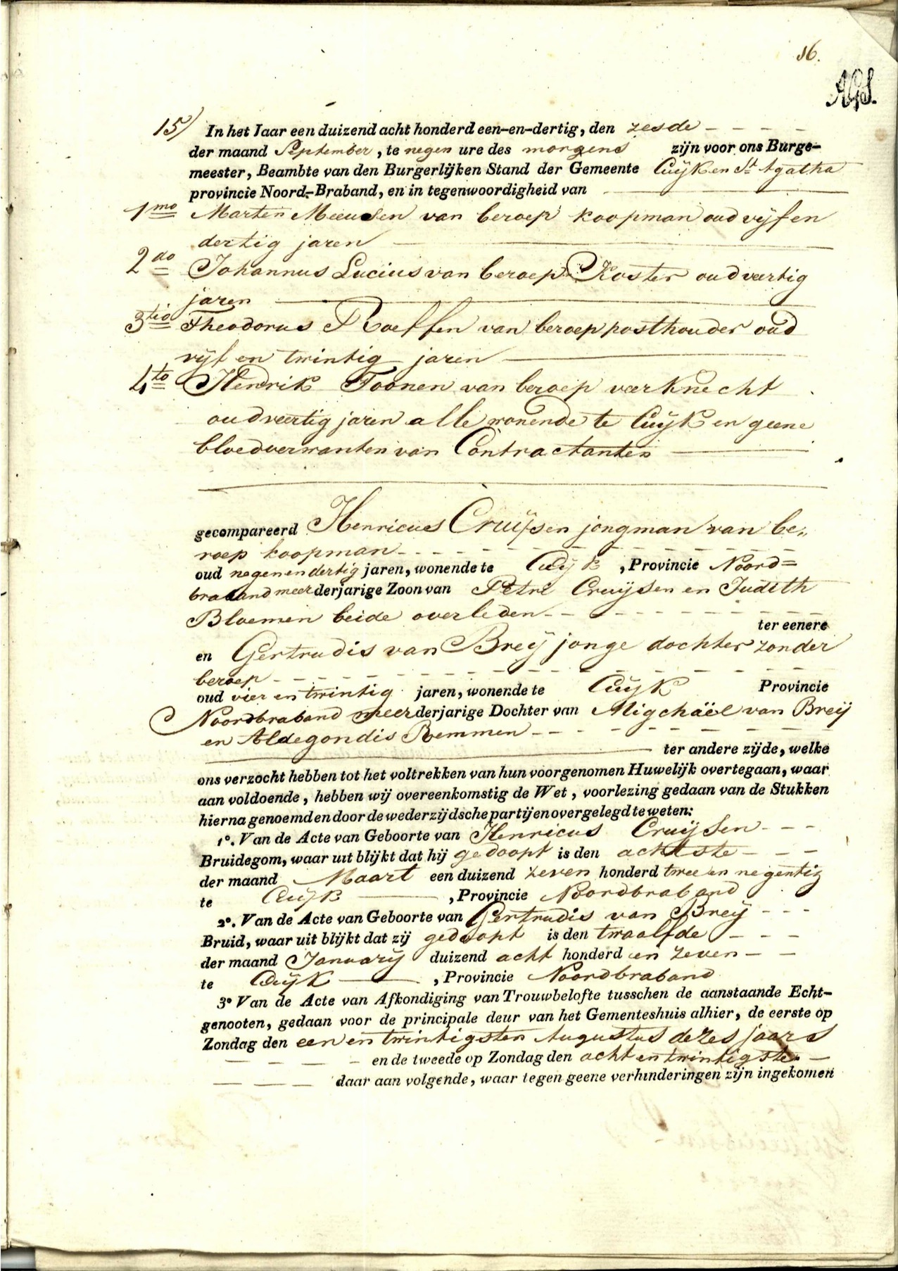 BHIC, huw. reg. Cuijk en Sint Agatha 1831, akte 15