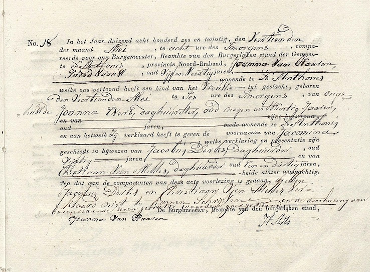 BHIC, geb. reg. Oploo, Sint Anthonis en Ledeacker 1826, akte 18