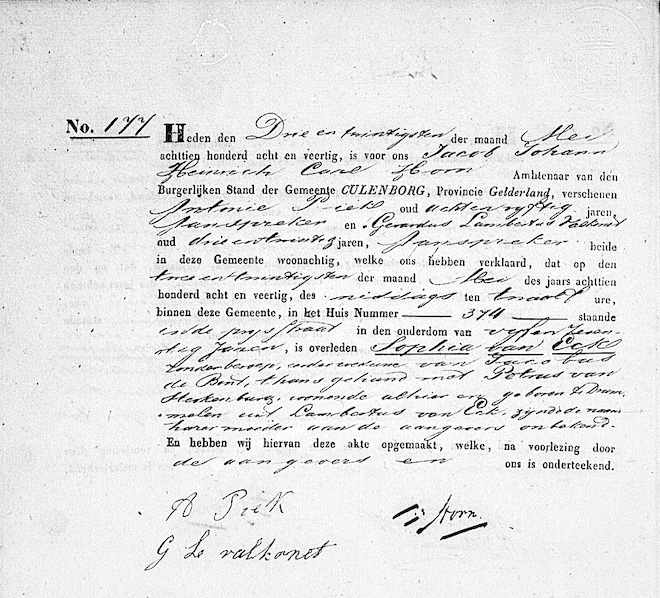 Sophia van Eck overlijden