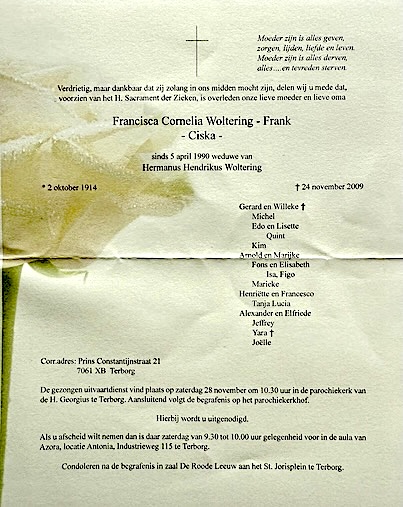 Francisca Cornelia Frank overlijden