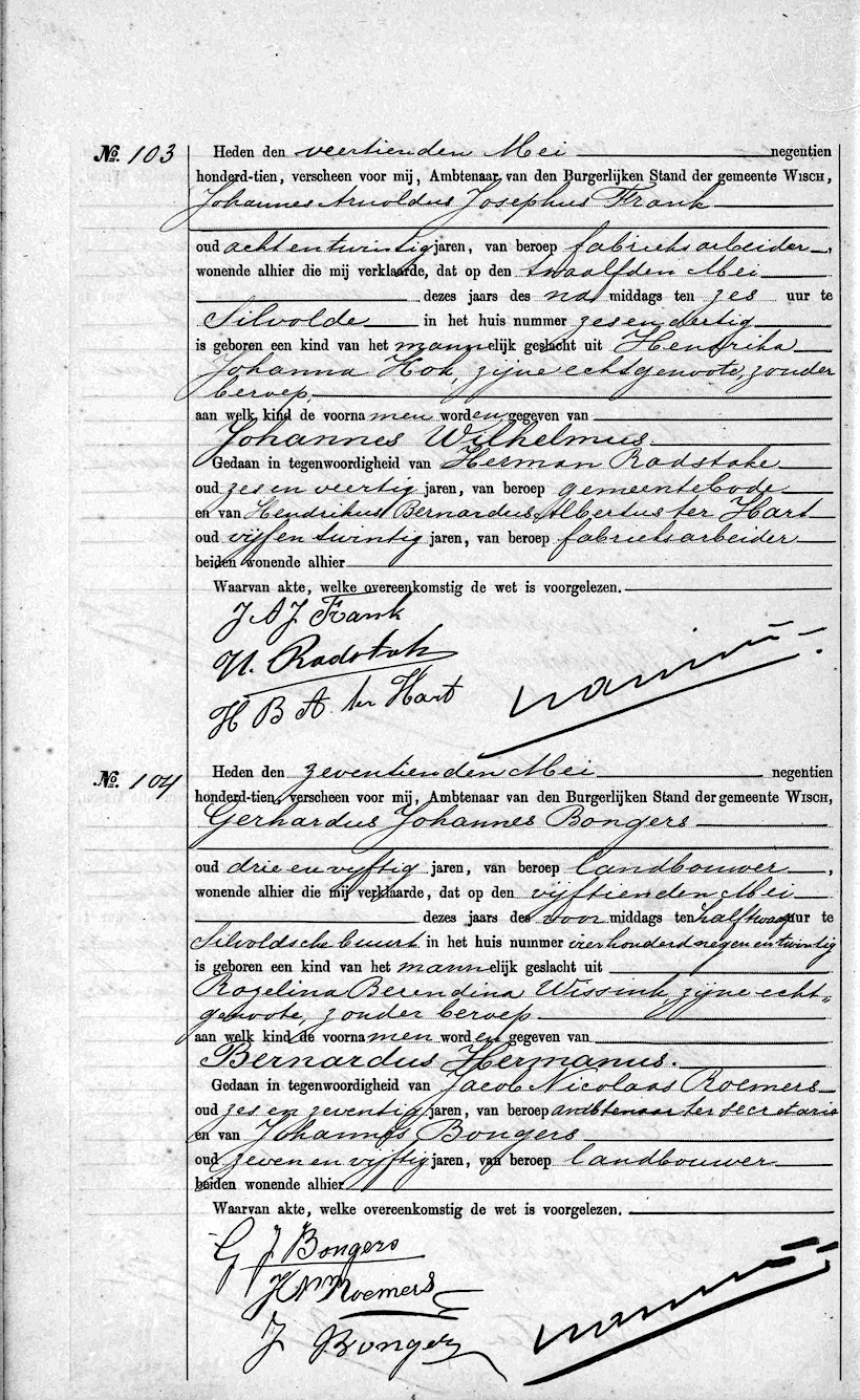 WWW, geb. reg. Silvolde 1910, akte 103