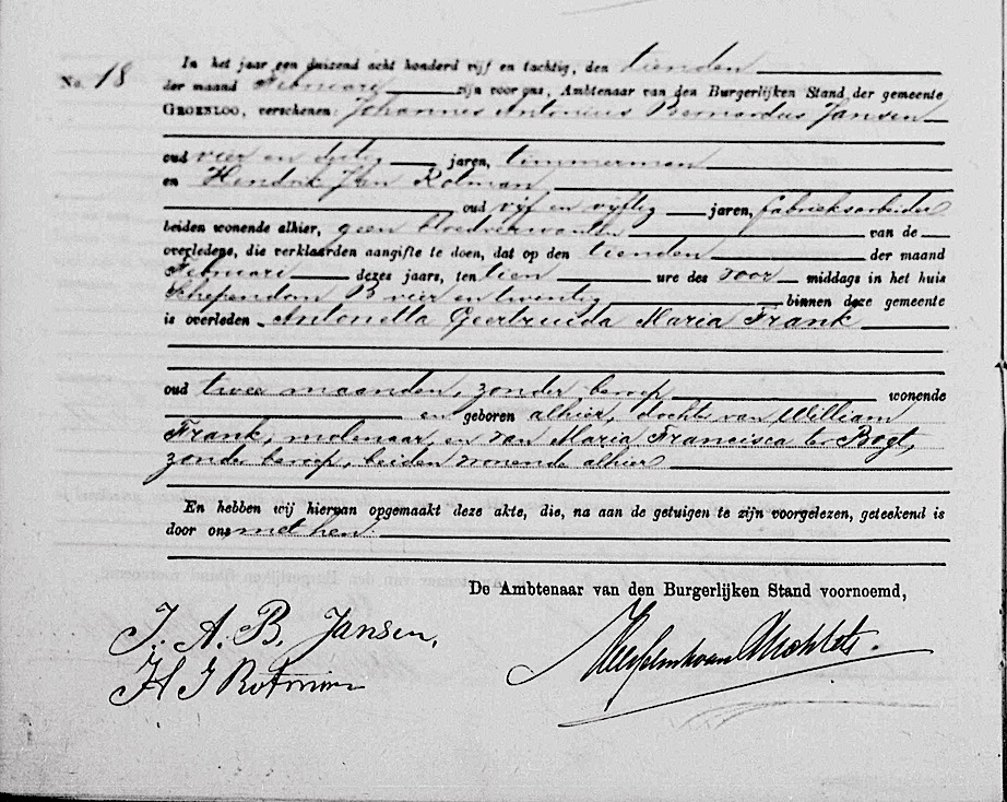 Antonetta Geertruida Maria Frank overlijden