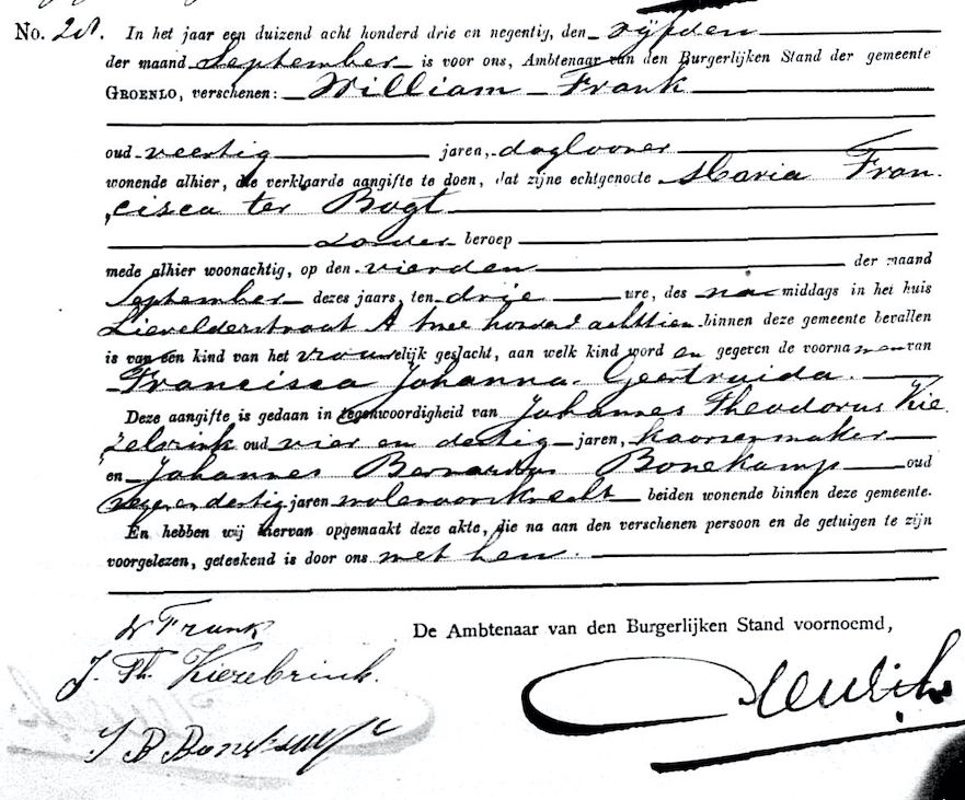 Geb. akte 05-09-1893 no 28 Francisca Johanna Geertruida Frank