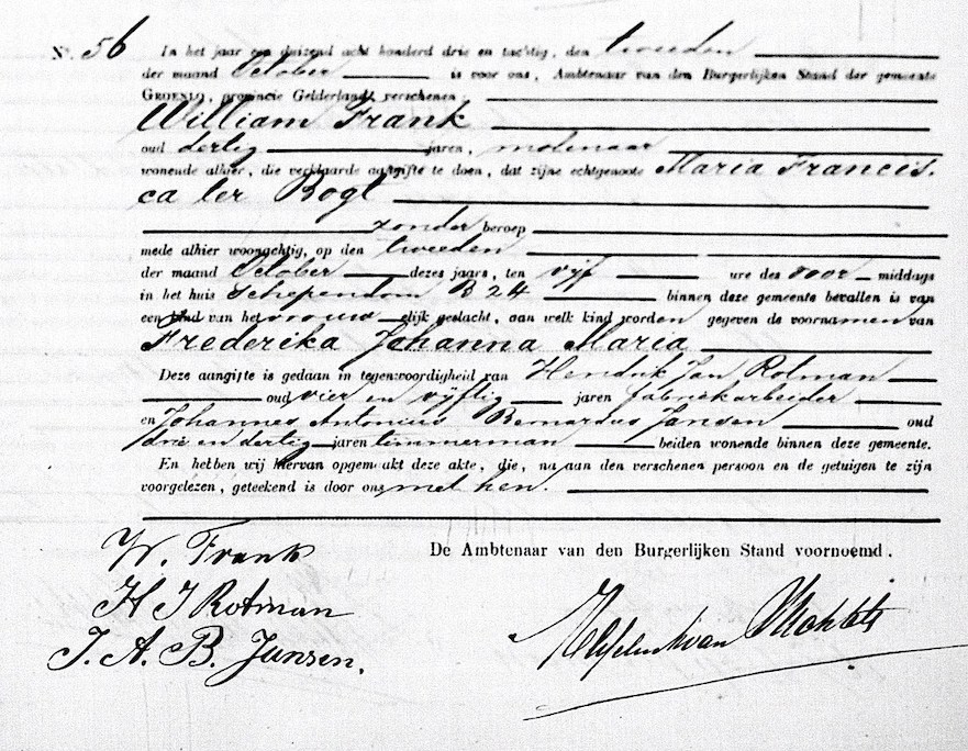 Frederika Johanna Maria Frank geboorte
