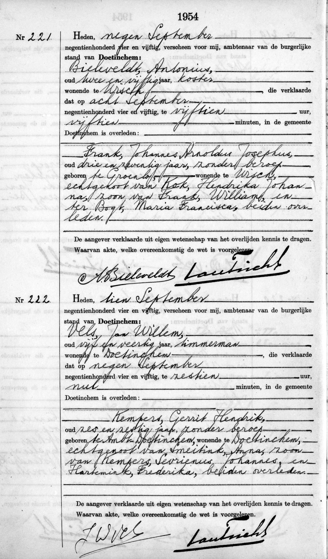 WWW, ovl. reg. Doetinchem 1954, akte 221
