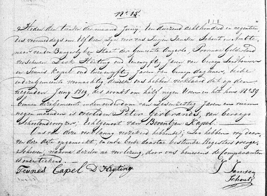 Gerbrands Peter, ovl. reg. Angerlo 09-06-1819, akte 15