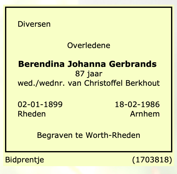 Berendina Johanna Gerbrands overlijden