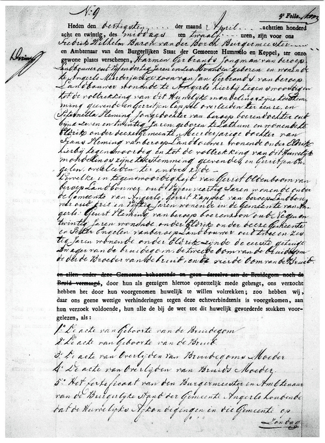 Hummelo huw. akte 30-04-1828 no 9 Harmen Gerbrands - Peternella Vleming