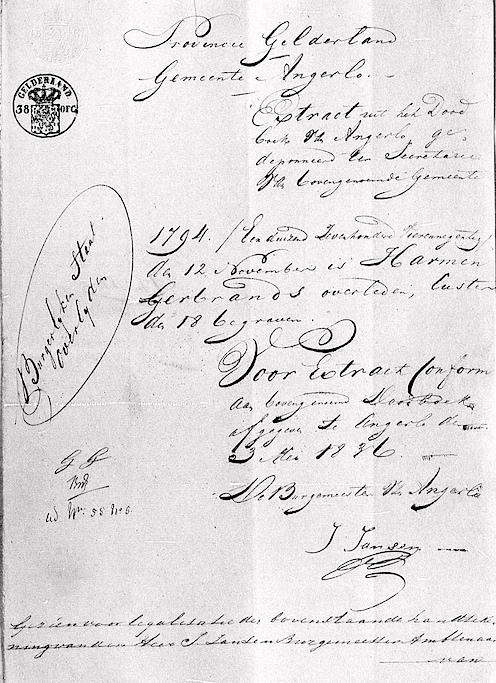 Gerbrands Harmen, extract uit het doodb. van Angerlo overl. 12-11-1794