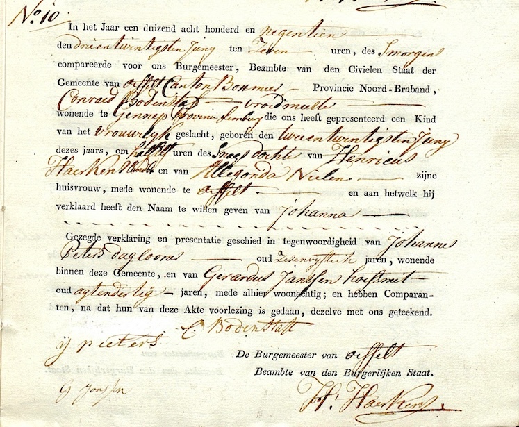 BHIC, geb. reg. Oeffelt 1819, akte 10