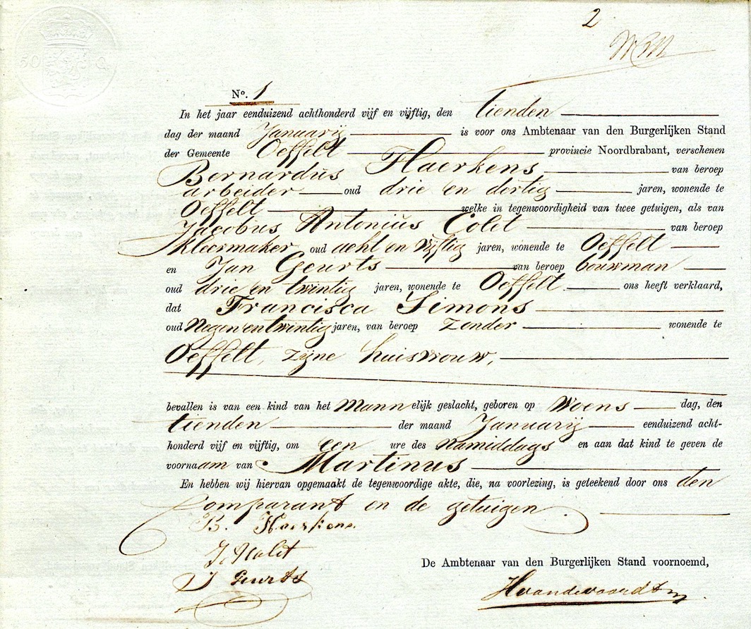 Martinus Haerkens geboorte