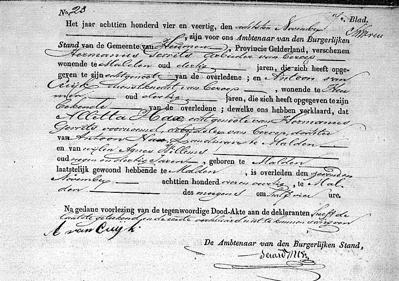 Alletta Hax overlijden