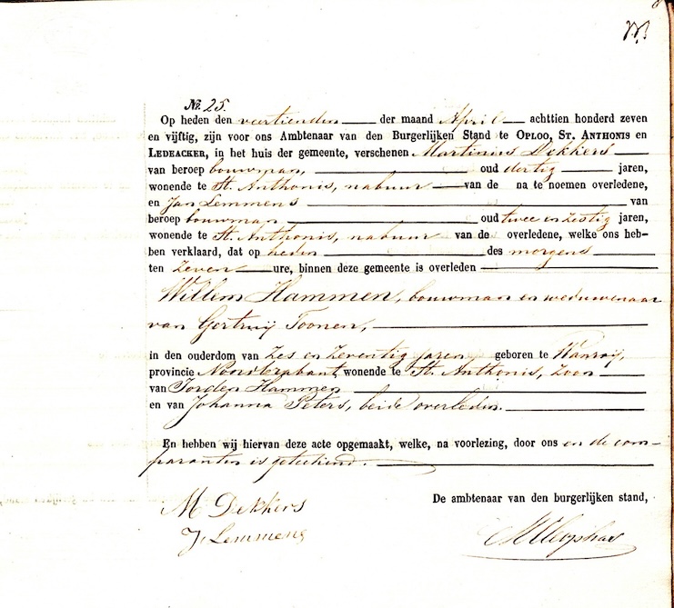 BHIC, overl. reg. Oploo, Sint Anthonis en Ledeacker 1857, akte 25