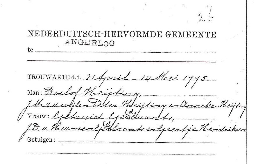 Angerlo huw. 14-05-1775 Roelof Heijting en Gertruid Gerbrands