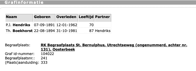 Petrus Johannes Hendriks overlijden