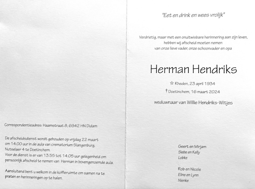 H.J. Hendriks overlijden