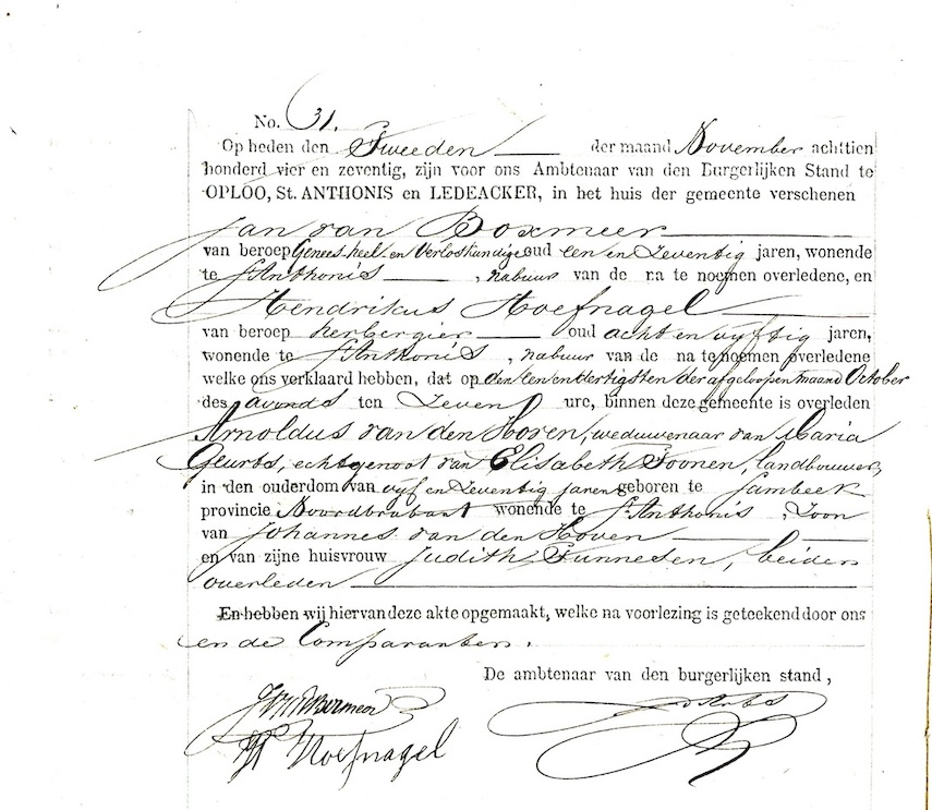 BHIC, ovl. reg. Oploo, Sint Anthonis en Ledeacker 1874 akte 31