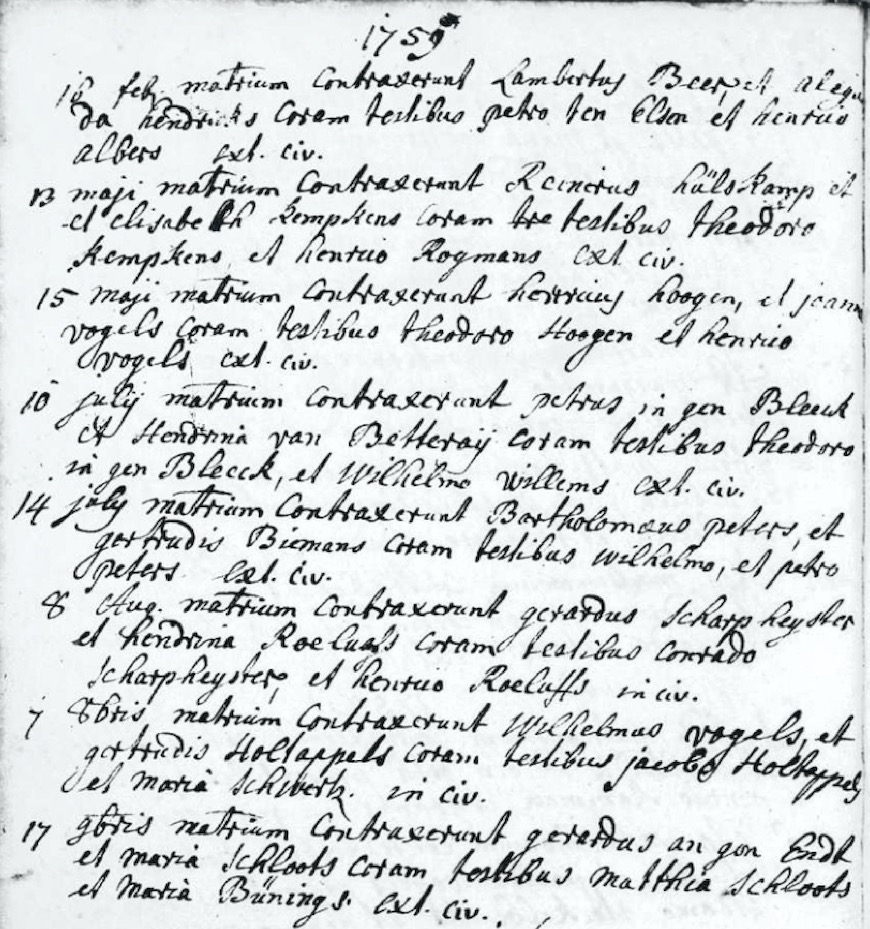 Kervenheim huw. 10-07-1759 Petrus Ingenbleek en Hendrina van Betteraij