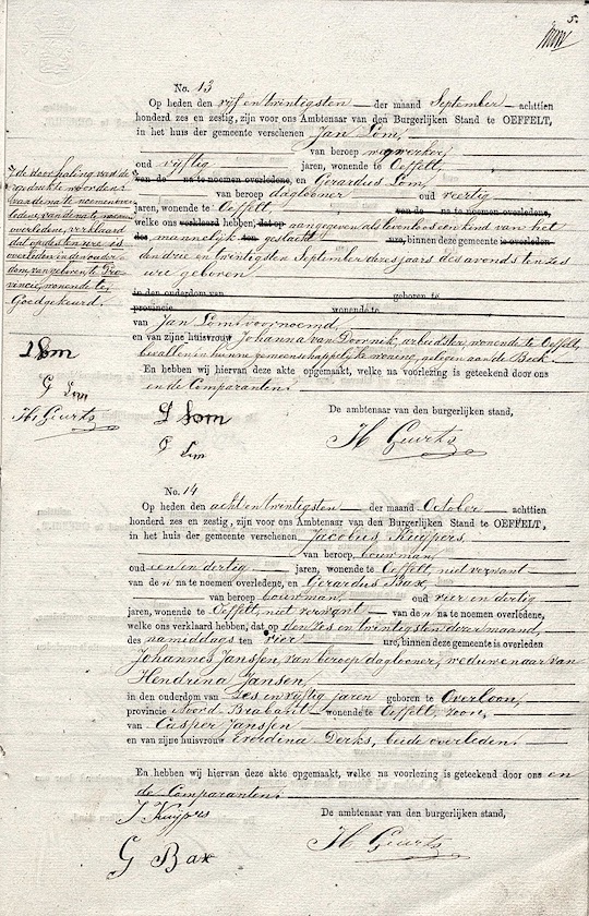 BHIC, ovl. reg. BS Oeffelt 1866, akte 14
